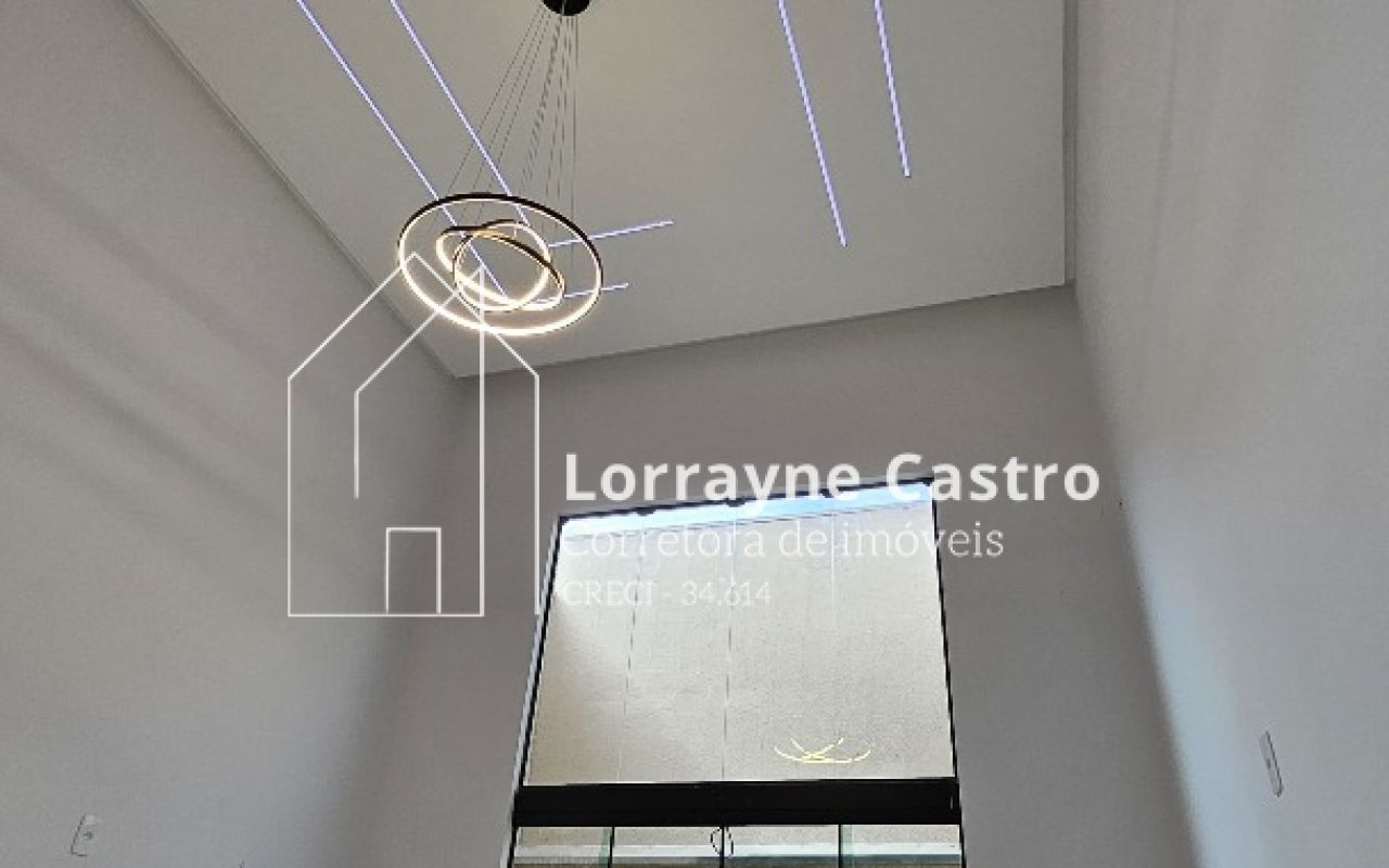 - Sala com pé direito duplo, design moderno, perfil e iluminação em LED