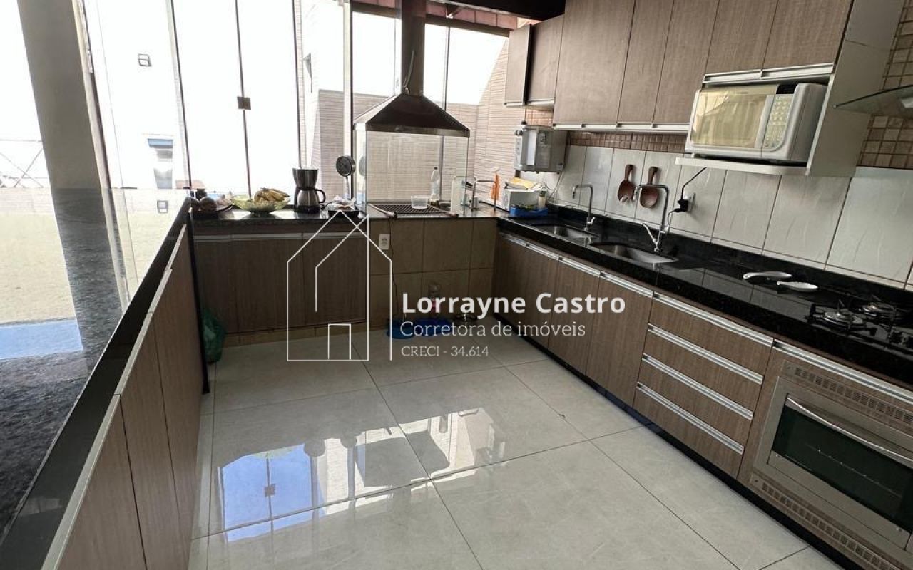 Área gourmet e cozinha com churrasqueira